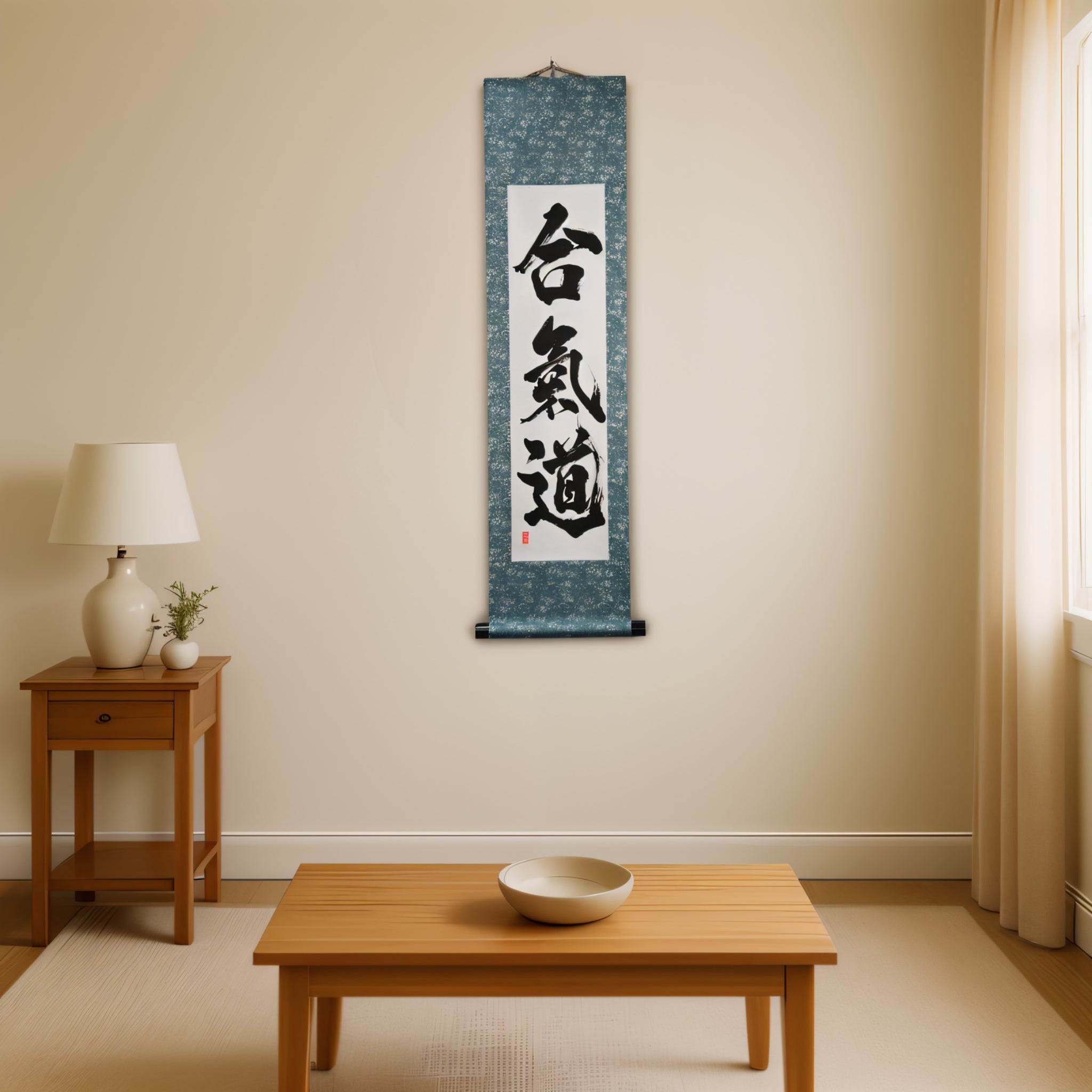 Each brushstroke reflects the essence of Aikido: calm focus, inner strength, and the discipline of movement. By displaying this scroll, you align your space with the energy of the practice, enhancing your training environment and motivating you to continue on your path of growth.